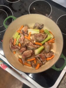 Our Industry Habitat Manager recommends using this chicken and dumplings recipe but braising the squirrel meat “low and slow” and cooking it longer than the chicken.